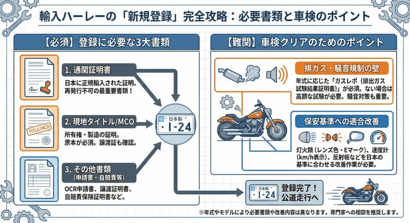輸入ハーレーの「新規登録」完全攻略|必要書類と車検のポイントを徹底解説