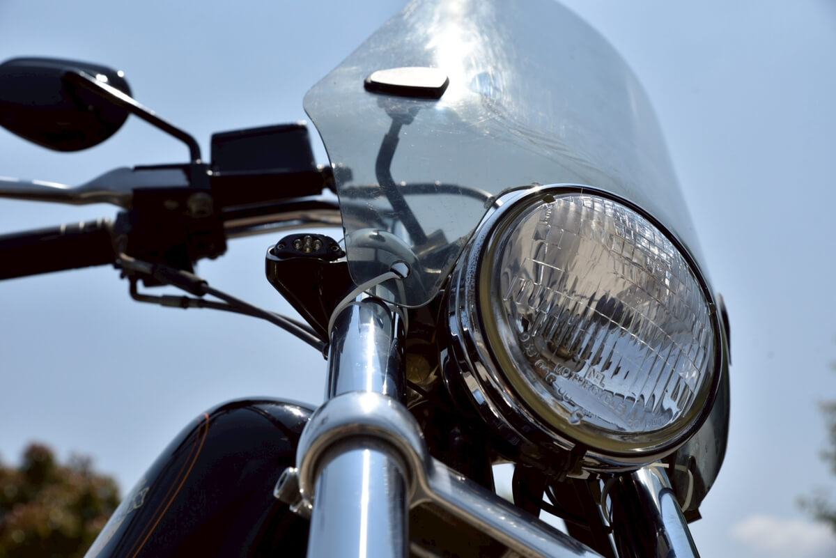 さらに、ヘッドライトの光軸(光の照らす向き)も、アメリカの右側通行を前提とした「右上がり」の配光になっています。これを日本の左側通行に合わせた「左上がり」の配光に修正しなければ、対向車を眩惑させてしまい危険であり、車検にも通りません。これらの改善作業は、輸入ハーレーの登録における必須項目となります。